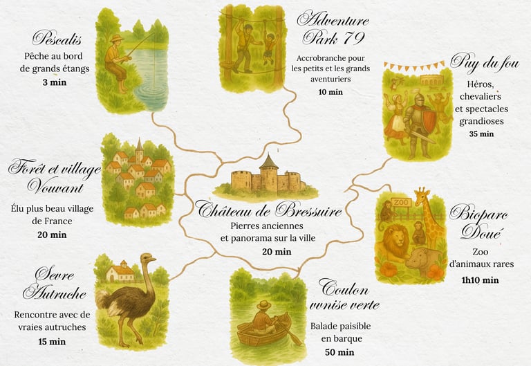 S'il vous prend l'envie de visiter les Deux-Sèvres, nous vous avons fait une sélection de lieux à à voir et des activités à faire, à seulement quelques minutes en voiture du domaine du mariage.